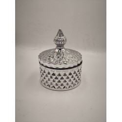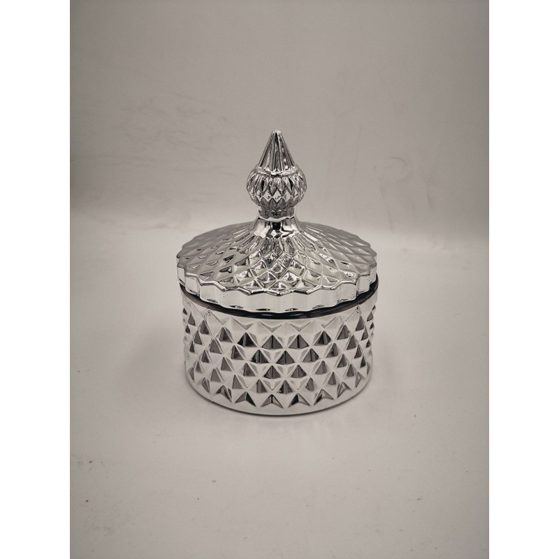 Dodaj ten srebrny pojemnik do koszyka i wykorzystaj go jako bazę do świec lub stylowy element dekoracyjny w domu.